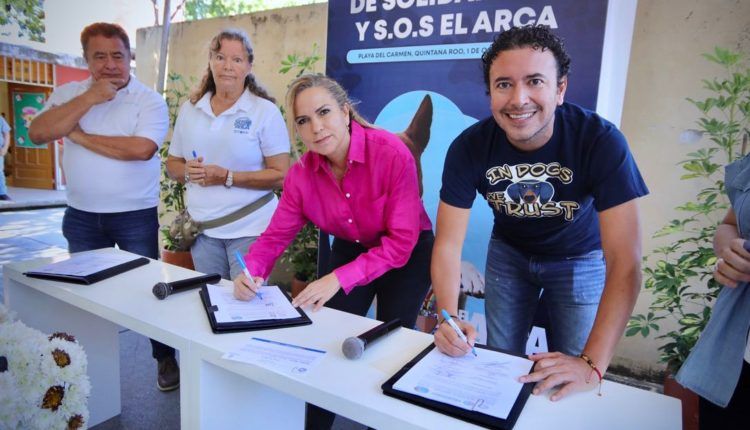 Playa del Carmen.- La presidenta Lili Campos y la asociación SOS El Arca, firmaron un convenio con el que se renuevan las acciones de bienestar animal, a través de campañas conjuntas de esterilización, vacunación antirrábica y para el cuidado del medio ambiente.