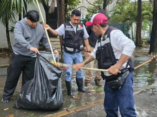 La estrategia fue implementada por la Secretaría de Protección Civil, Prevención de Riesgos y Bomberos, en coordinación con la Secretaría de Servicios Públicos Municipales, como parte de las acciones preventivas y de respuesta ante fenómenos meteorológicos.