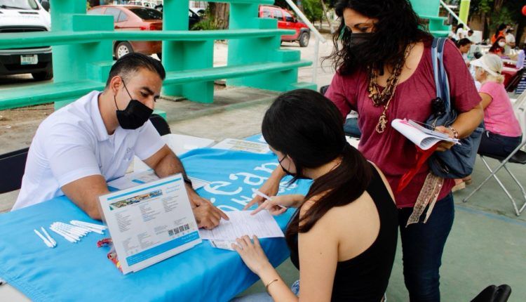 Puerto Morelos.- Con el propósito de ofrecer más oportunidades de trabajo a las y los portomorelenses, y con ello contribuir a su desarrollo y economía familiar, la Secretaría municipal de Desarrollo Económico y Mejora Regulatoria, en coordinación con empresas de la localidad, organizó hoy la Tercera Feria del Empleo, “Creciendo con Puerto Morelos”, en el domo de la colonia Zetina Gasca.