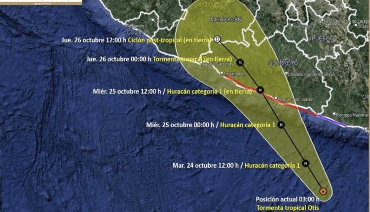 En su aviso de las 6:15 h de este martes, el SMN detalló que Otis mantiene su trayectoria hacia las costas de Guerrero.