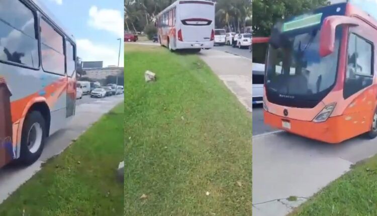 En las imágenes se observa a la unidad 324 mientras circula sobre la banqueta del camellón central de la zona turística, tratando de sobrepasar a los automóviles que se encontraban detenidos en el carril que conduce hacia el centro de la ciudad.