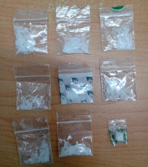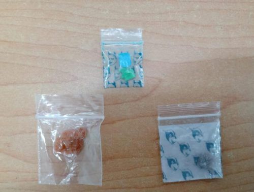 Entre las pertenencias de los asegurados los policías encontraron 9 bolsas con una sustancia granulada de las características de la droga llamada cristal, una bolsa con dos pastillas similares a la droga conocida como éxtasis y 1 bolsa con polvo blanco al parecer cocaína, por lo que fueron traslados a la Secretaría de Seguridad Pública para ser valorados por el médico en turno y puesto a disposición de Fiscalía General del Estado.