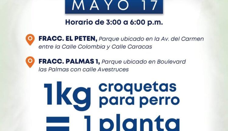 Es importante mencionar que por cada kilo de croquetas que se done en los puntos de acopio, recibe una planta de ornato o árbol de la región, así como los residuos sólidos que lleven como cartón, electrónicos, envases de PET, plástico, etc. Se invita a que acudan con los residuos sólidos, reciclables limpios, separados y embolsados.