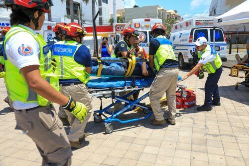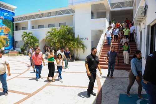 Playa del Carmen.- Con el objetivo de fomentar la cultura de la prevención y fortalecer la respuesta ante emergencias, el gobierno de Playa del Carmen, que preside la alcaldesa Estefanía Mercado, se unió al primer Simulacro Nacional 2025, con la participación de más de 700 personas en una práctica de evacuación general por emergencia de incendio en el antiguo Palacio Municipal.