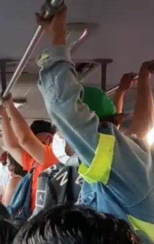 En una foto se ve como algunos ciudadanos lejos de no subirse a la unidad con tal de llegar a sus destinos, prefirieron subirse al camión abarrotado y luego esconderse a la orden del camionero.