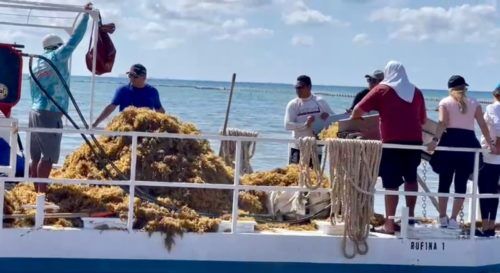 Explicó que el ayuntamiento a través de la Zona Federal Marítima Terrestre intensificaría la movilización de las sargaceras para la recolección de la macroalga en el mar en caso de que la Marina ceda las embarcaciones.