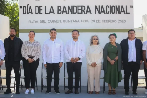 Playa del Carmen, Quintana Roo, 24 de febrero de 2026.— Autoridades municipales encabezaron este lunes la ceremonia conmemorativa por el Día de la Bandera, en un acto cívico donde se rindieron honores al Lábaro Patrio y se destacó la importancia de fortalecer los valores de unidad, legalidad y justicia desde el ámbito local.