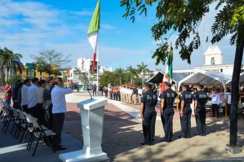 El evento fue organizado por el Ayuntamiento de Playa del Carmen y contó con la participación de funcionarios municipales y regidores, quienes se reunieron para recordar el significado histórico del símbolo nacional.