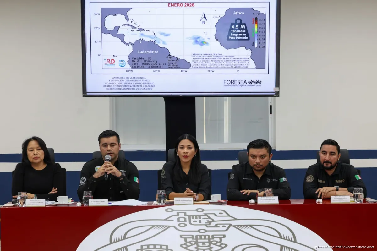 Playa del Carmen, Quintana Roo, 11 de febrero de 2026.— Ante proyecciones regionales que estiman hasta 4.5 millones de toneladas de sargazo en peso húmedo en el Atlántico y el Caribe durante 2026, el Gobierno Municipal de Playa del Carmen activó de manera anticipada su estrategia integral contra la macroalga, con el objetivo de proteger el litoral y la actividad turística.
