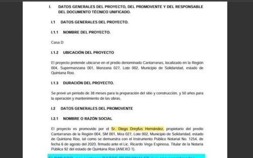 Playa del Carmen.– El Ayuntamiento de Playa del Carmen dejó claro que el proyecto “Casa D” del coach motivacional de Javier “Chicharito” Hernández, Diego Dreyfus, no cuenta con autorización municipal para construirse, pese a que ya obtuvo el aval de la Secretaría de Medio Ambiente y Recursos Naturales (Semarnat) a nivel federal.