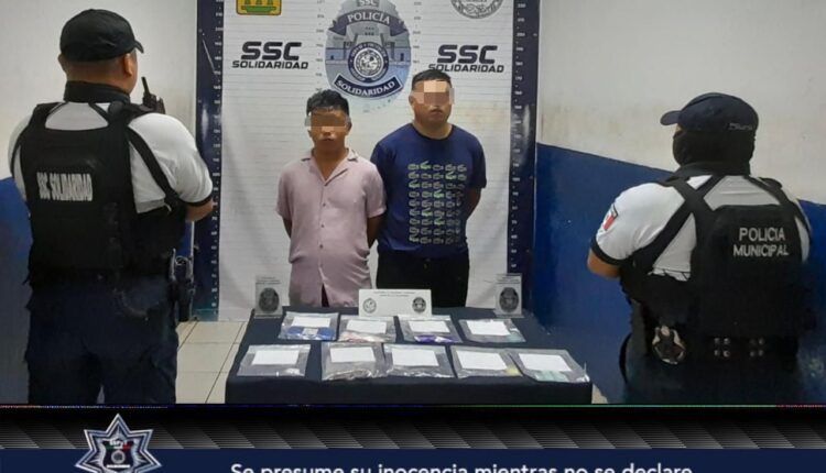 Playa del Carmen. – La Secretaría de Seguridad Ciudadana Municipal (SSCM) de Solidaridad informó sobre la detención de dos personas del sexo masculino en posesión de 129 dosis de posibles narcóticos, tras una intervención en la colonia Centro.