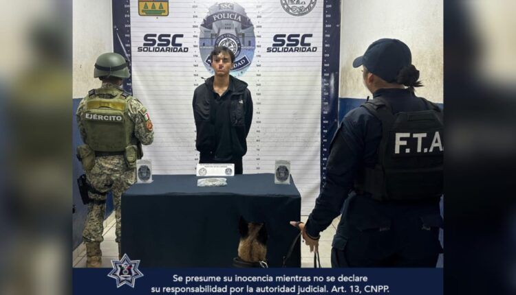 Playa del Carmen. – En el marco del operativo “Sellamiento”, destinado a evitar el ingreso de narcóticos al municipio, la Policía Municipal de Solidaridad aseguró a una persona en posesión de posibles drogas.