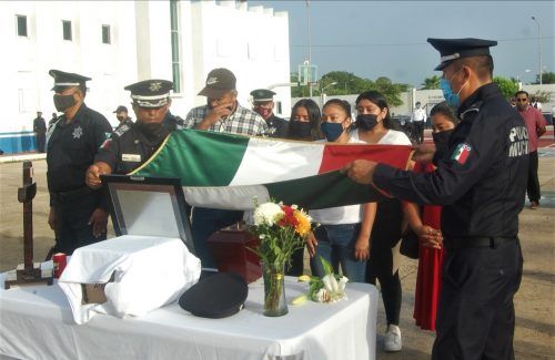 “No existen palabras que reconforten el que hoy ya no esté más con nosotros, ni esta situación por la que estamos pasando, por ello les reitero que el mejor homenaje que podemos llevar a cabo es seguir su ejemplo, ser fuertes y seguir avanzando a paso firme por nuestro municipio”, señaló el comandante Jorge Robles Aguilar, tras dar el sentido pésame a su familia.