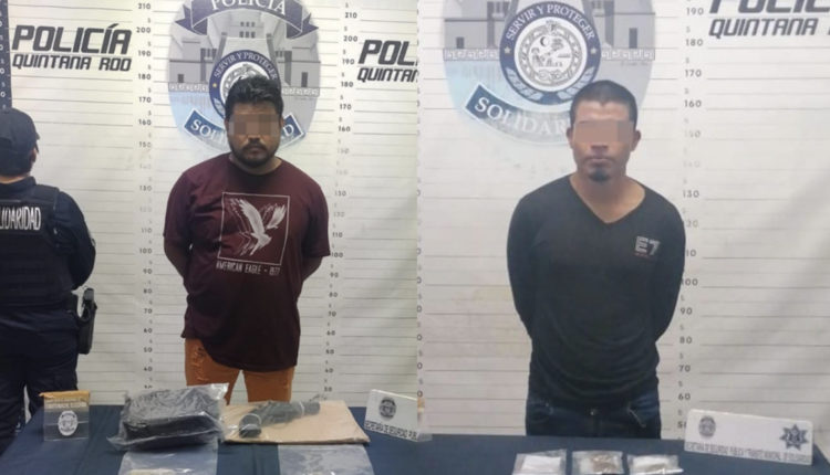 Playa del Carmen (Macropolis QR).- En el marco de los operativos implementados para la detección de narcóticos y armas de fuego, Policías Municipales de Solidaridad aseguraron a dos sujetos en dos hechos diferentes, uno de los cuales tenía en su posesión una réplica de arma.