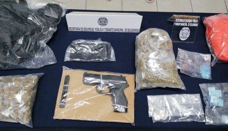 Playa del Carmen- Policías municipales de Solidaridad aseguraron a dos sujetos con diversos narcóticos y una réplica de arma de fuego, de igual forma acordonaron un inmueble posiblemente relacionado en delitos contra la salud.