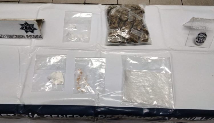 En la colonia In House los elementos de la Policía Preventiva y la Guardia Nacional, realizaron el aseguramiento de una bolsa con 28 envoltorios con posible marihuana, 20 con posible cocaína y 5 con lo que parece metanfetamina, luego de un sujeto los dejó caer al suelo. Los artículos asegurados fueron puestos a disposición de la Fiscalía General del Estado para el deslinde de responsabilidades.