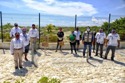 Isla Mujeres, Quintana Roo a 29 de septiembre de 2020. – Luego de la capacitación impartida por el Ayuntamiento de Isla Mujeres sobre el Manejo y Conservación de las Tortugas Marinas al Hotel Majestic, ubicado en la Zona Continental, el personal de dicho centro de hospedaje puso en práctica los conocimientos adquiridos con la realización de un pequeño corral en el cual colocaron seis nidos de tortugas marinas, de los cuales tres ya fueron puestos en libertad.