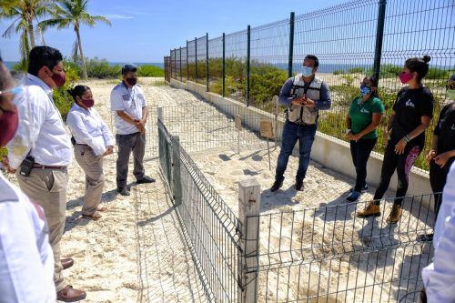 En un trabajo conjunto entre la dirección de Desarrollo Urbano y Medio Ambiente, encabezada por Nivardo Fernández Martínez y la Tortugranja dirigida por Deline García Canto, se realizó un recorrido por las instalaciones donde colocaron los seis nidos de tortuga para corroborar que los métodos aplicados sean los correctos y supervisar el buen manejo de éstas emblemáticas especies.