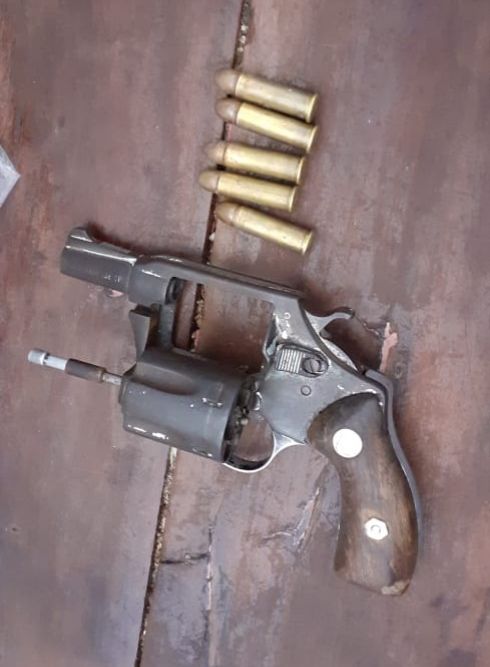 Playa del Carmen, Quintana Roo, 8 de agosto 2020.-Como resultado del patrullaje y vigilancia permanente en colonias, policías de la Secretaría de Seguridad Pública y Tránsito Municipal aseguraron a 2 personas y un arma de fuego tipo revolver con 5 cartuchos, cuando transitaban a bordo de una motocicleta.