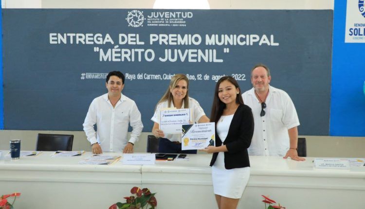 Playa del Carmen.- En conmemoración del Día Internacional de la Juventud, la presidenta municipal Lili Campos estuvo presente en la entrega del premio “Mérito Juvenil” otorgado a jóvenes solidarenses en diversas categorías.