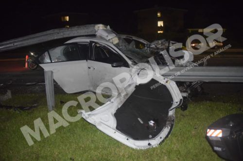 Mientras de la segunda persona lesionada se comento que la habían trasladado abordo de un vehículo particular, el vehículo compacto quedó en pérdida total debido al tremendo impacto que se dio contra las barras de contención.