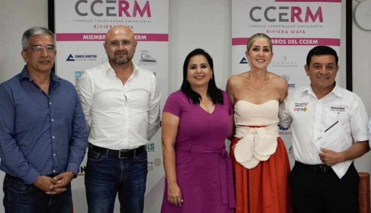 Durante la reunión con los representantes de 18 agrupaciones empresariales que forman parte del CCERM, Mayuli Martínez también habló de la movilidad, la recuperación de playas y la problemática del sargazo.