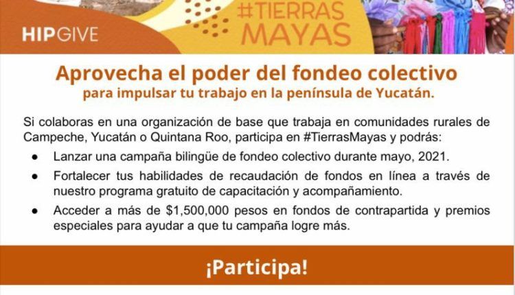 Cancún, Quintana Roo; Mayo 6, 2021.-Al dar a conocer las organizaciones que participarán por la recaudación de fondos para impulsar sus propios proyectos de desarrollo, en los estados de Campeche, Quintana y Yucatán, HIPGive.org confirmó que la iniciativa #TierrasMayas tiene un respaldo de 1.5 millones de pesos, para duplicar los recursos captados entre las campañas más exitosas.