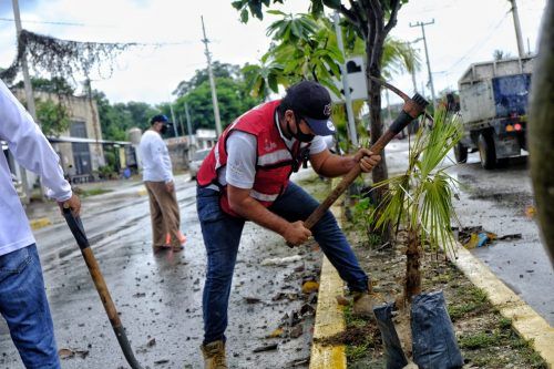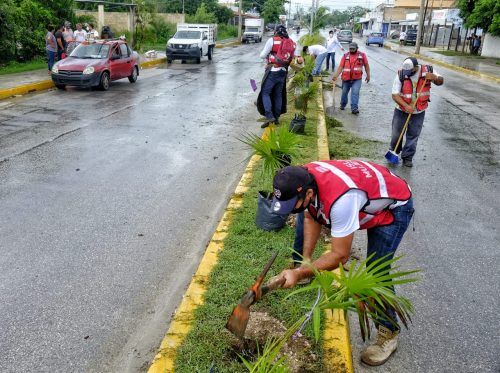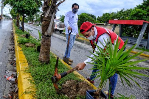 Isla Mujeres, Quintana Roo a 24 de septiembre de 2020. – Los camellones de Isla Mujeres, tanto en la ínsula como en la Zona Continental, se han embellecido con plantas nativas de la región como la palma “chit” y palma de coco que se han sembrado para mantener al municipio con buena imagen urbana y amigable con el medio ambiente.