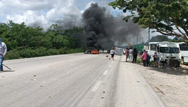 Los moradores se atrincheraron sobre la vía federal 307 a unos seis kilómetros al sur de Tulum desde donde lanzaron piedras, botellas, palos y todo tipo de objetos contra los agentes.