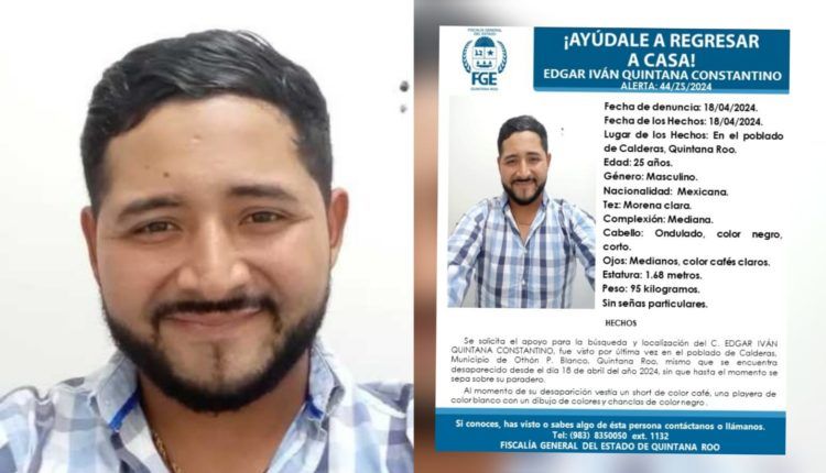 “Amigos, les pido de todo corazón que me ayuden a compartir ya que la mañana de hoy se llevaron a mi primo Edgar Ivan Quintana Constantino a la fuerza aquí en calderitas. Él es una buena persona, todos lo que lo conocen lo saben xfavor ayúdenme su familia y esposa están muy preocupados el será papá en unos meses el no se mente en problemas compartan [sic]”, expresó.