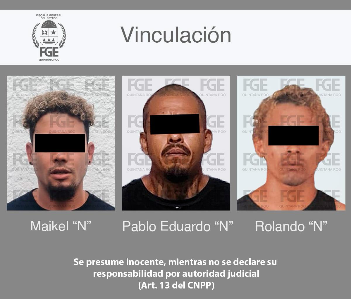 Benito Juárez, Quintana Roo.- La Fiscalía General del Estado, a través de la Fiscalía Especializada en Combate a los Delitos de Secuestro y Extorsión, obtuvo de un Juez de Control el auto de vinculación a proceso para tres hombres identificados como Pablo Eduardo “N”, Rolando “N” y Maikel “N”, por su probable participación en el delito de extorsión agravada, en perjuicio de víctimas de identidad reservada.