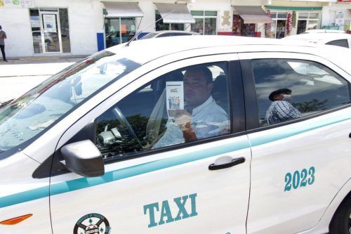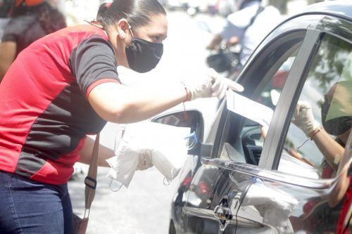 Playa del Carmen, Quintana Roo, 5 de agosto de 2020.- Como parte de la campaña “Por la Salud de Todas y Todos” colectivos de la CROC acudieron a los cruzamientos de las avenidas más importantes de la ciudad para continuar con la concientización de la importancia del uso de cubrebocas, esta vez entre automovilistas y transeúntes.