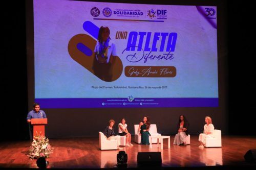 Playa del Carmen.- Por un municipio más inclusivo y a fin de promover actividades que fomenten la integración de las familias solidarenses, se llevó a cabo la conferencia “Una Atleta Diferente”, con la campeona paraolímpica de gimnasia Gaby Anahí Flores, en donde la presidenta municipal, Lili Campos, invitó a las y los ciudadanos a inspirarse en personas como la invitada especial para salir adelante a pesar de los retos que se presenten ante la vida.