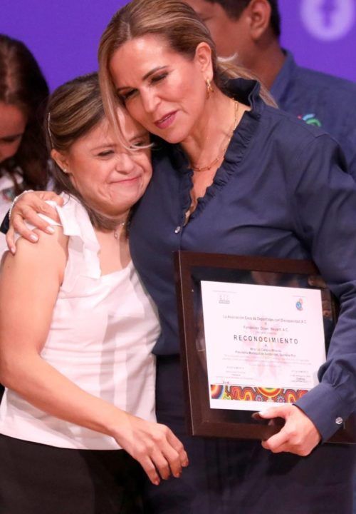La conferencia se llevó a cabo en el Teatro de la Ciudad, con la presencia de familias con hijas e hijos con síndrome de Down, la misma condición de vida que la de la invitada ganadora de más de 70 medallas de oro, plata y bronce, y quien ha representado a México en diversos continentes.