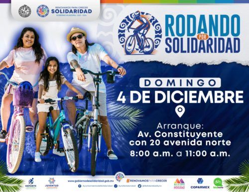 Playa del Carmen.- Como cada primer domingo de mes, el próximo 4 de diciembre el gobierno de Lili Campos realizará la actividad recreativa “Rodando por Solidaridad”, en la que podrán participar las familias solidarenses en diferentes medios no motorizados, con facilidades para personas con discapacidad gracias a su formato se calles cerradas.