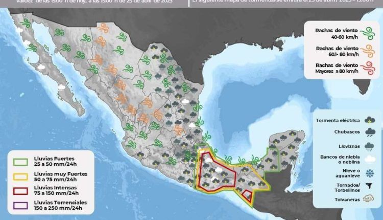 Así lo anuncio el Servicio Meteorológico Nacional (SMN) y agrega que para la península de Yucatán habrá cielo nublado por la mañana, aumento de nublado por la tarde y alta temperatura y lluvias con chubascos en la región. Ambiente caluroso por la tarde todo el día y viento variable de 10 a 25 Km/h en la región.