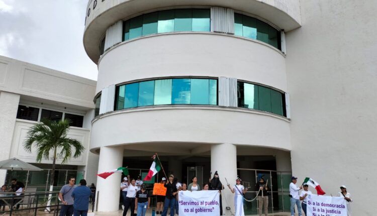 Cancún. – Este mediodía, alrededor de 150 abogados, trabajadores y jueces del Poder Judicial de la Federación se reunieron frente a las instalaciones del Poder Judicial del Estado en Cancún para realizar una manifestación pacífica en contra de la reforma judicial aprobada esta madrugada en la Cámara de Diputados.
