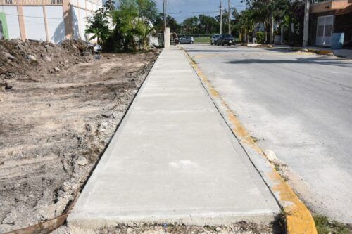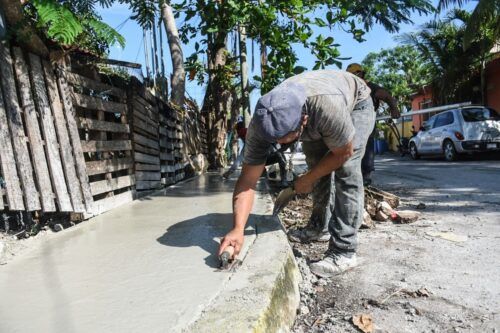 Puerto Morelos, Quintana Roo, 13 de enero de 2021.- La presidenta municipal Laura Fernández Piña informó que avanza a paso firme la obra de construcción de alrededor de 8 mil metros cuadrados de banquetas y 1,300 metros lineales de guarniciones en la colonia Pescadores, el Casco Antiguo y la Zetina Gasca.