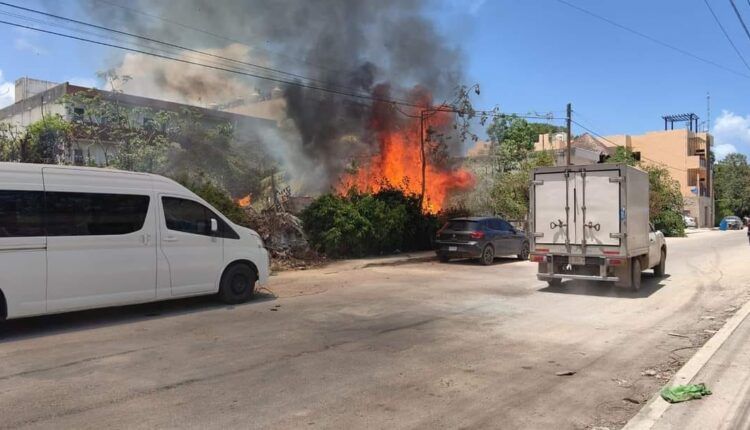 Tulum. Elementos del Cuerpo de Bomberos sofocaron esta tarde un incendio surgido en una palapa usada como bodega de plástico y cartón, en esta ciudad.