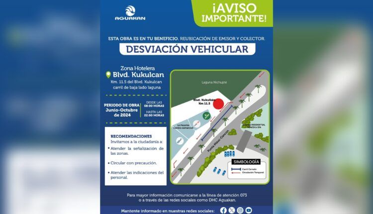 Aguakan hace un llamado a la ciudadanía a tomar las precauciones necesarias durante el periodo que se realicen las labores. Asimismo, se les invita a seguir los avances a través de la línea de atención de Aguakan al 073 o por las redes sociales, en Facebook y “X” como DHC AGUAKAN.