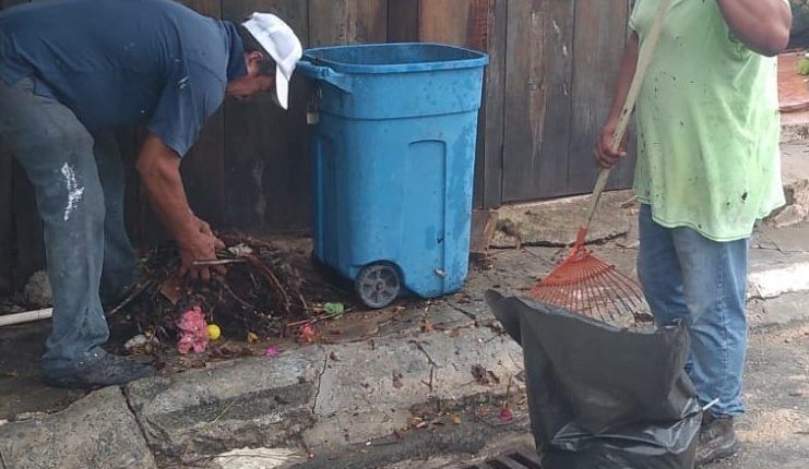 Colaboradores de Servicios Públicos divididos en cinco brigadas recorren calles y avenidas para retirar basura como bolsas plásticas, envases PET, frutos podridos que caen de los árboles, entre otros, para evitar obstrucciones y así garantizar el óptimo funcionamiento de los pozos pluviales y se dé una rápida recuperación de las calles al paso de la lluvia.
