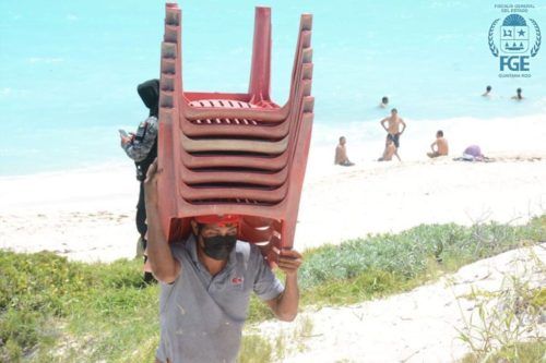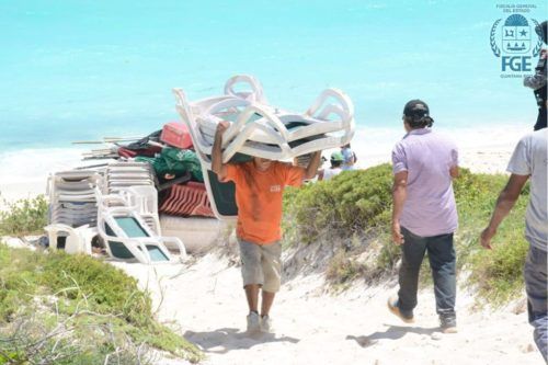 Asimismo, se retiraron del lugar diversos camastros, sombrillas, sillas y otros artículos de playa por no contar con la concesión correspondiente y además obligaban a los turistas a pagar cuotas excesivas .