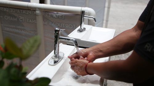 Se instalaron lavabos de manos afuera de las taquillas y se mantiene la sana distancia con flujo moderado de personas