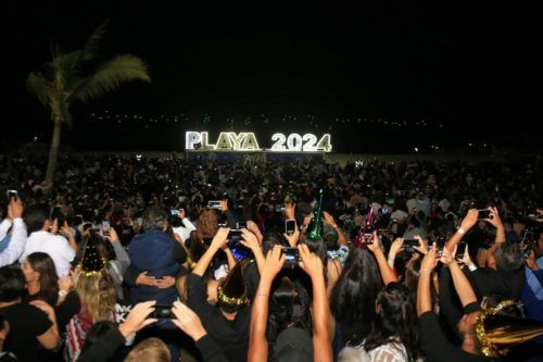 Playa del Carmen.- “En este 2024 con corazones renovados, con amor renovado por nuestros hijos, familia y seres queridos deseo que sea un año de mucha salud, bendiciones, unidad, prosperidad y de muchos éxitos”, destacó la presidenta Lili Campos al recibir en el Portal Maya el nuevo año 2024 junto a 10 mil personas que se dieron cita en este lugar tan icónico para solidarenses y visitantes.