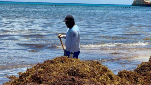 Informó que hasta este momento se ha colocado un 60 por ciento de las barreras para contener el sargazo y solo opera una sargaceras de las dos que se tienen asignadas para Solidaridad.