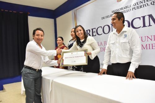 Felipe Carrillo Puerto, Q. Roo, 11 septiembre 2018.- La presidenta municipal Paoly Perera entregó reconocimientos a empleados municipales por logros alcanzados y por el desempeño sobresaliente que registraron diferentes áreas administrativas del ayuntamiento, donde reconoció el esfuerzo de jóvenes que incursionaron en diferentes áreas y disciplinas.