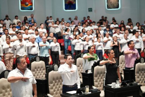 En la sesión ordinaria número 20 se rindieron honores a la Bandera de México y de Quintana Roo, además de entonarse los himnos Nacional y del Estado, con la participación de la escolta del Poder Legislativo y del ITCH, de la Banda de Guerra de dicho instituto educativo, así como de egresados, egresadas, personal docente y estudiantado del Tec de Chetumal, quienes fueron testigo de este importante acontecimiento.