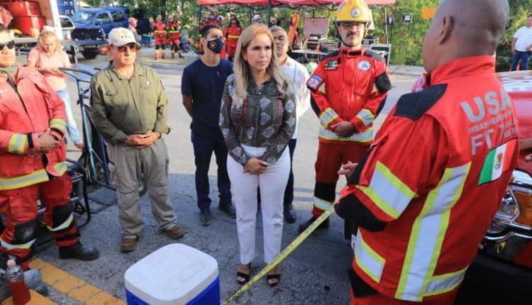 Playa del Carmen.-A fin de conocer la forma en que se coordinan y desarrollan los equipos de búsqueda y rescate de; Jalisco, Querétaro, Ciudad de México, Marina, Sedena, en el simulacro de Ejercicio Multinacional Tradewinds que se realiza en esta ciudad, la presidenta municipal de Solidaridad, Lili Campos Miranda realizó un recorrido por la sede, sobre la calle 38 entre 35 y 30 Norte, dónde saludo y reconoció la labor de los participantes quienes buscan profesionalizarse más.