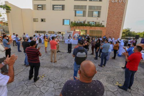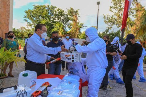 Acompañado del secretario general de la CROC Quintana Roo, Martín de la Cruz Gómez; del tesorero nacional, Hugo Ramos; la coordinadora del Jurídico, Leslie Berenice Baeza Soto y del dirigente de la Delegación 56, Mario Machuca Sánchez, el líder nacional, diputado federal, Isaías González Cuevas hizo también entrega de bombas nebulizadoras y overoles para quienes integran las Brigadas de Sanitización