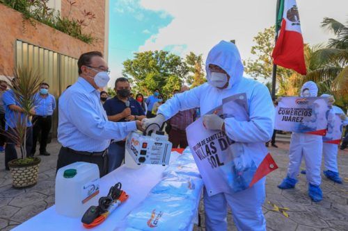En Playa del Carmen, las brigadas de sanitización atenderán inicialmente las colonias y fraccionamientos: Luis Donaldo Colosio, Gonzalo Guerrero, Villas del Sol, La Guadalupana, Misión del Carmen, Villamar I, comercios de la Avenida Juárez, además de la delegación Puerto Aventuras.